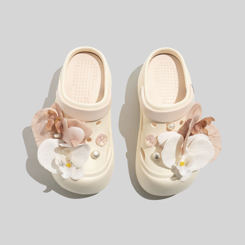 Damen Stilvolle Clogs Mit Floralen Accessoires Und Perlen