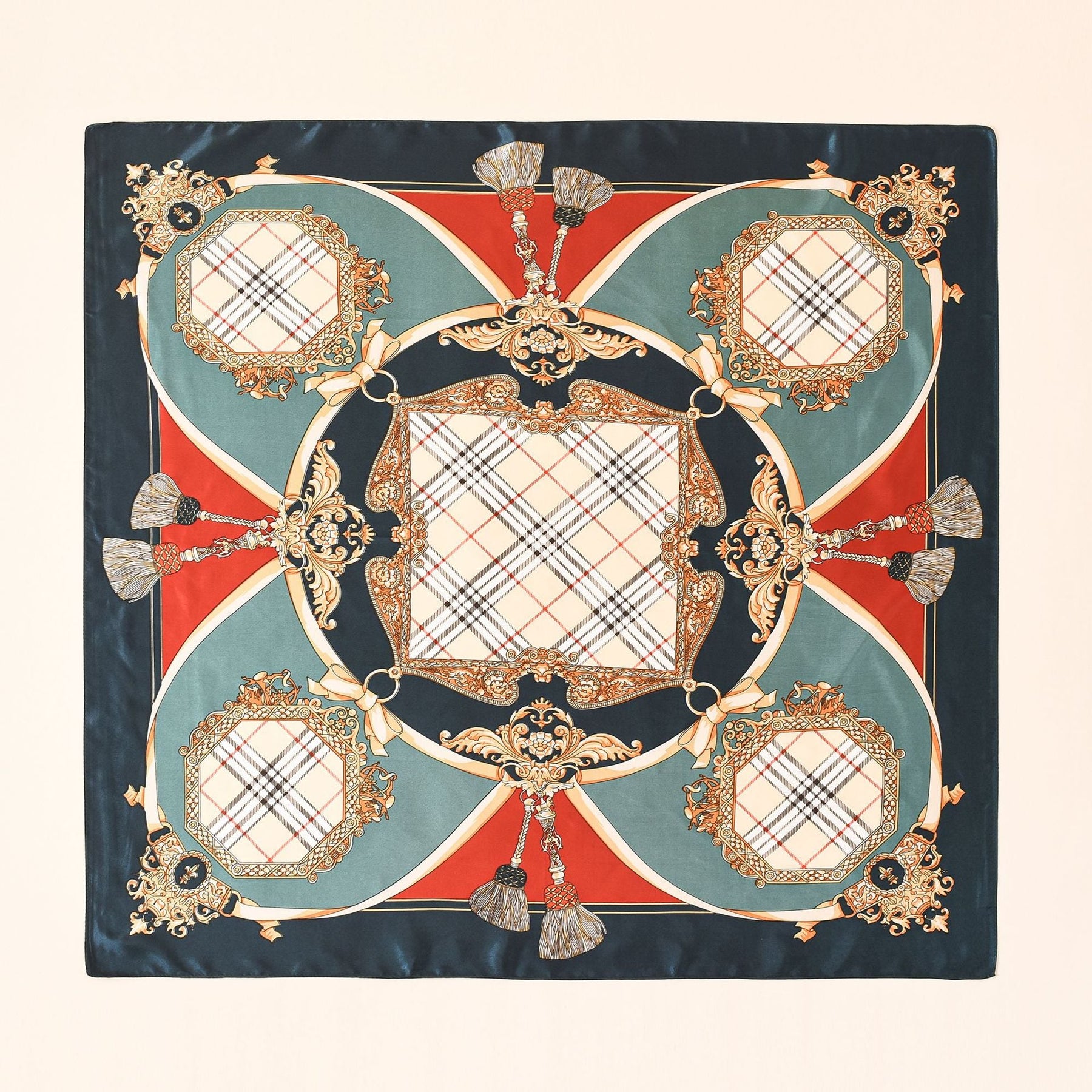 Entdecken Sie den exquisiten Damen Schal, der nicht nur elegant aussieht, sondern auch vielseitig einsetzbar ist. Dieser Schal kombiniert ein kunstvolles Barockmuster mit einer stilvollen Farbpalette, die jedem Outfit einen Hauch von Raffinesse verleiht. Hergestellt aus hochwertiger, glänzender Seide bietet er angenehmen Tragekomfort und ist ideal für verschiedene Bindetechniken und Styles.